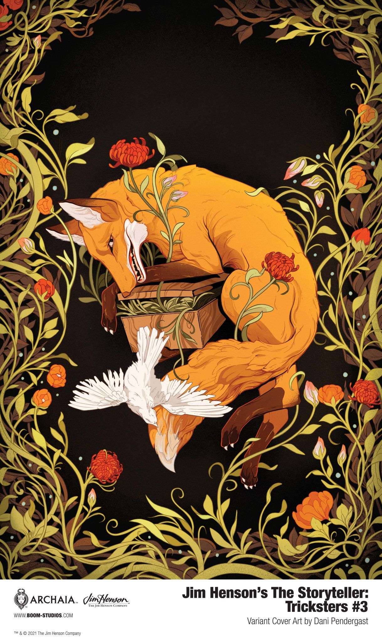 And second — I wrote an issue for Boom!Studios’ forthcoming Jim Henson’s The Storyteller: Tricksters anthology! My story’s about Reynard, and the art has laid me out flat. Behold the main cover by Peach Momoko and variant by Dani Pendergast: