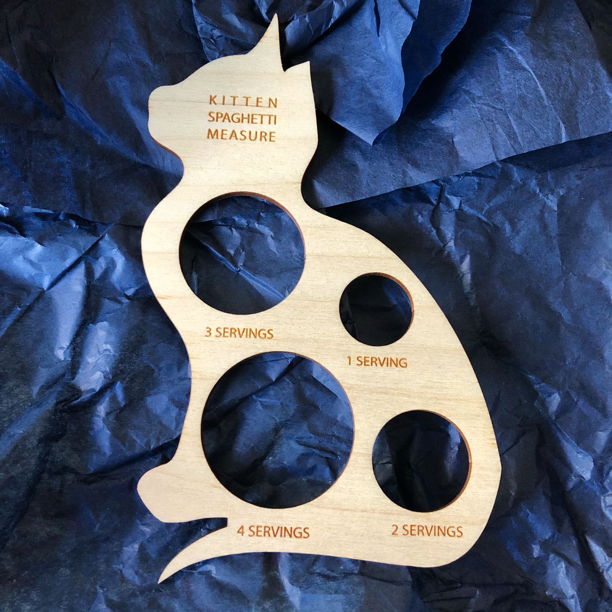 Alas, I have no Huspun with which to rouse your ire today, but instead I thought you might like to see what I got my husband for our recently celebrated 5th wedding anniversary. What do you get a man who loves cats beyond all measure but equally cannot measure portions of uncooked spaghetti?