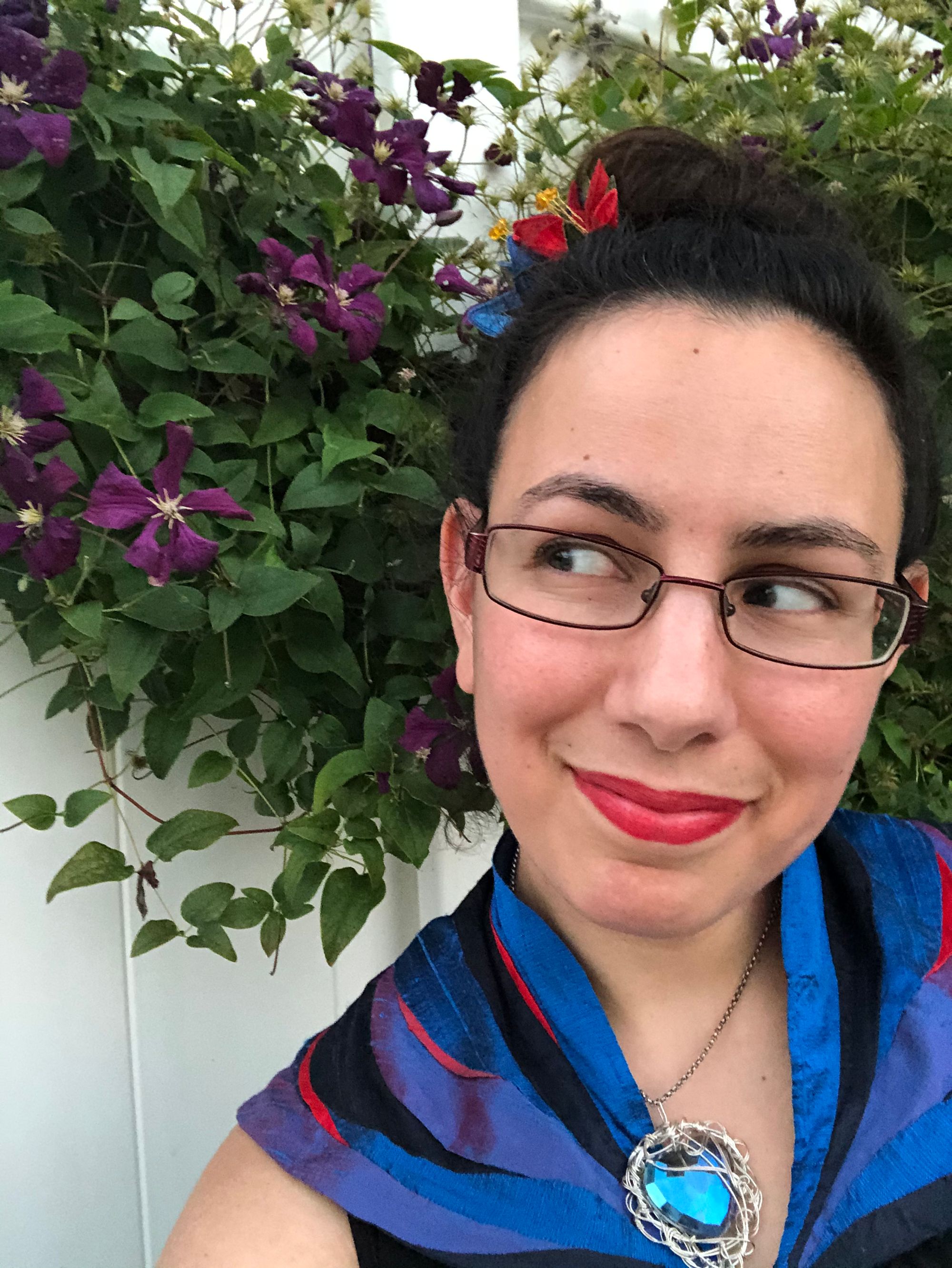 I’m also deeply grateful to my dear friends Jenn and Nadine for the use of their backyard to freak out in and accept an award from! Especially for their guidance towards this thematically appropriate clematis.