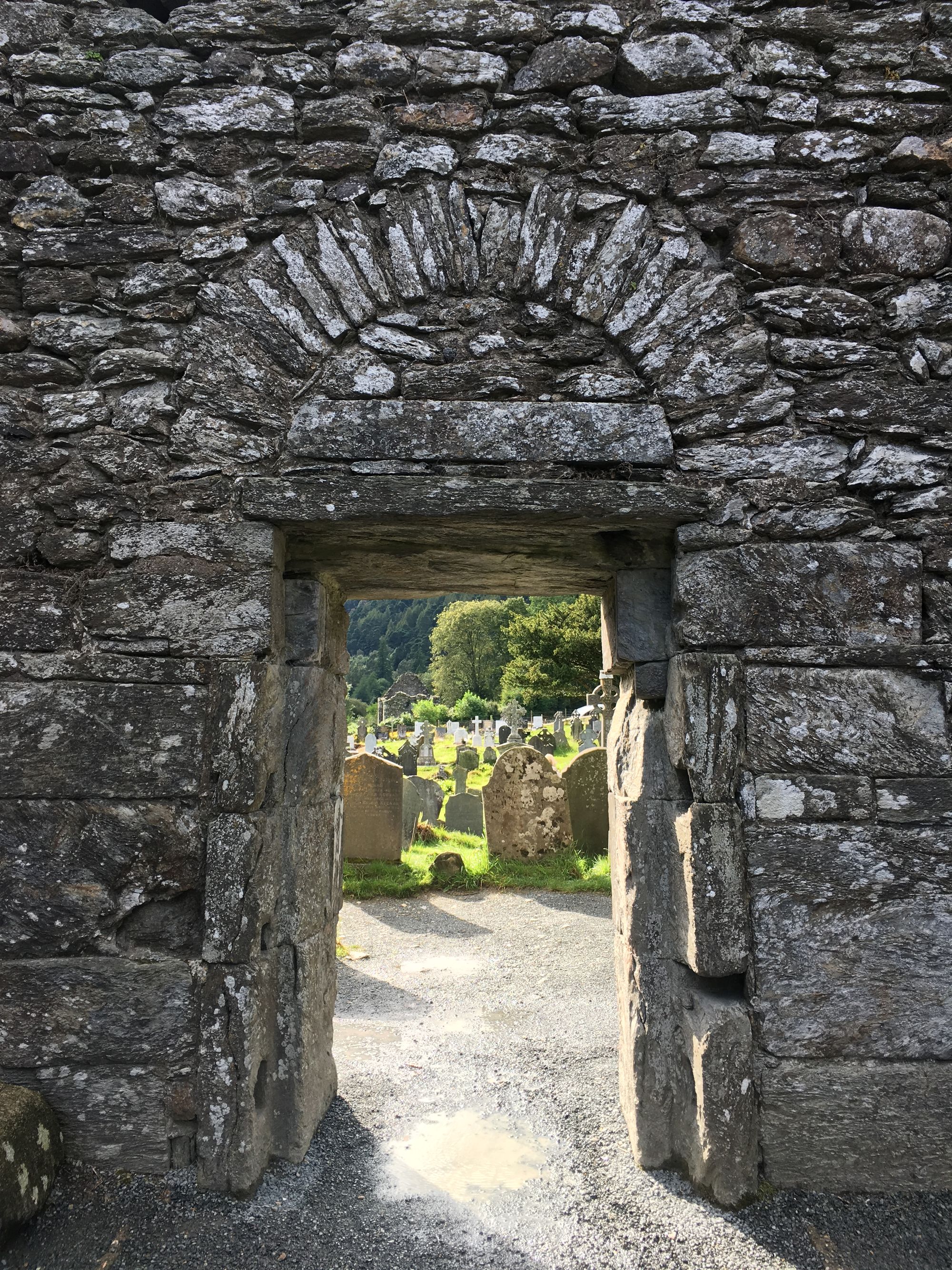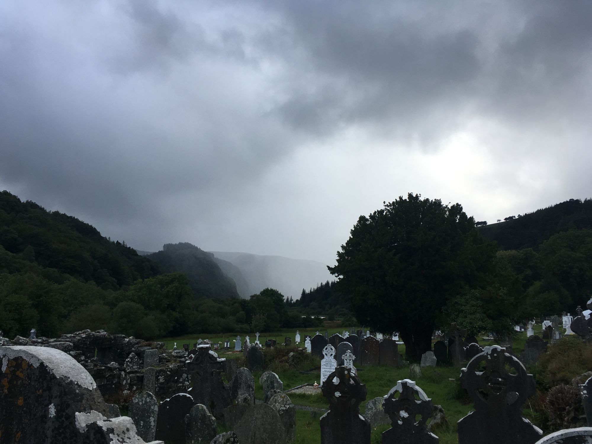 Literally, today, I touched gravestones; I touched the broken walls of ancient churches and castles. I touched, and where I touched, I wondered: what was life like in Glendalough when these buildings were whole? What did people think when they saw the rain coming through the hills like smoke, softening the light and blanketing the air? Did they roll their eyes and complain, did they laugh, did they marvel? Even if they’d seen it day in and out, did it fill them with awe every time?