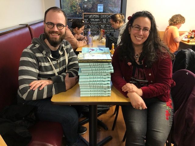 If you’re in the US and would like to obtain a double-signed copy in anticipation of holiday gift-giving, they’re the ones to contact! Just specify in your order or phone call that you’d like a signed copy. At last check they had about 16 available, which is significantly fewer than we signed, so they appear to be going fast.
