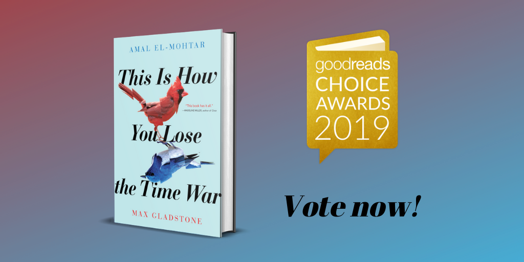 This week is the final round of the Goodreads Choice Awards, and This Is How You Lose the Time War is a finalist in Best Science Fiction! This is a really big deal! Thank you so, so much to everyone who voted and spread the word — it means the world to Max and me to see so much passion for this dear weird book of our hearts.