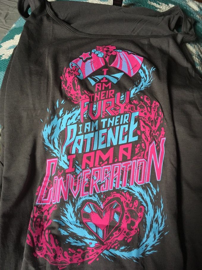 This is the speech I wrote and delivered at WisCon in 2017, when I was Guest of Honour alongside the magnificent Kelly Sue DeConnick. I was holding off posting it for a long while because I was told that video of the speech would be made available, and I wanted to share that instead of the text alone; I also think I spoke some things off the cuff (like thanking all the people who helped make the con amazing for me, dear gods please let me have actually done that) or hastily scribbled them on to a print-out I no longer have, so this is not the most accurate version of what was spoken in that amazing room where hundreds of people spontaneously sang songs from Steven Universe with me and we all cried and shouted together and closed a gorgeous circuit.